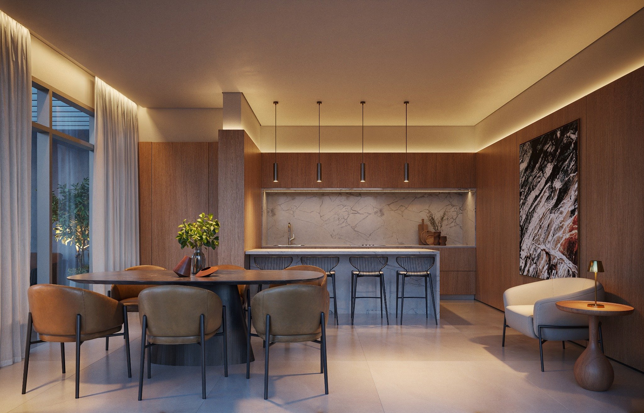 Ambientes integrados, varandas amplas e acabamentos de alto padrão criam uma experiência única de moradia, com sofisticação e conforto em cada detalhe.