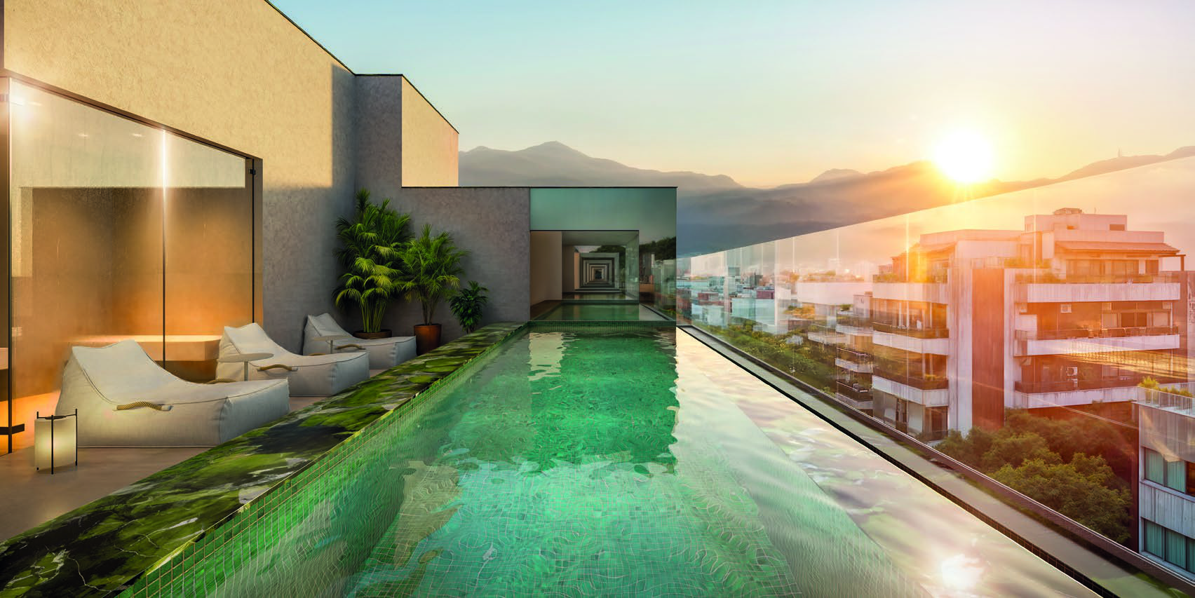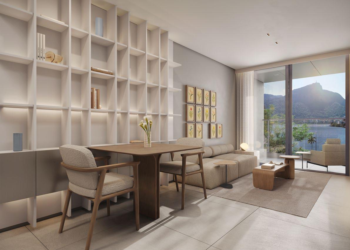 - Coberturas lineares exclusivas – 50 m² com terraço privativo e vistas privilegiadas para a Lagoa Rodrigo de Freitas e o Cristo Redentor.
