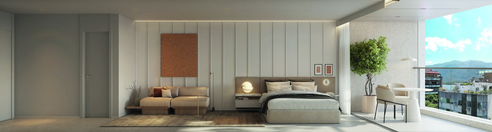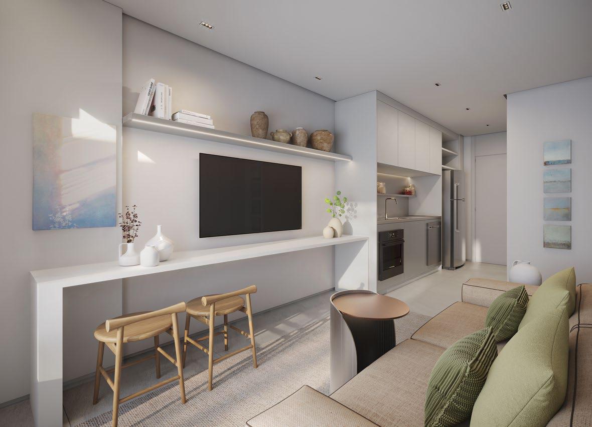 - Studios compactos – praticidade e estilo em 32 m², perfeitos para solteiros, jovens casais ou investidores que buscam liquidez e fácil locação.