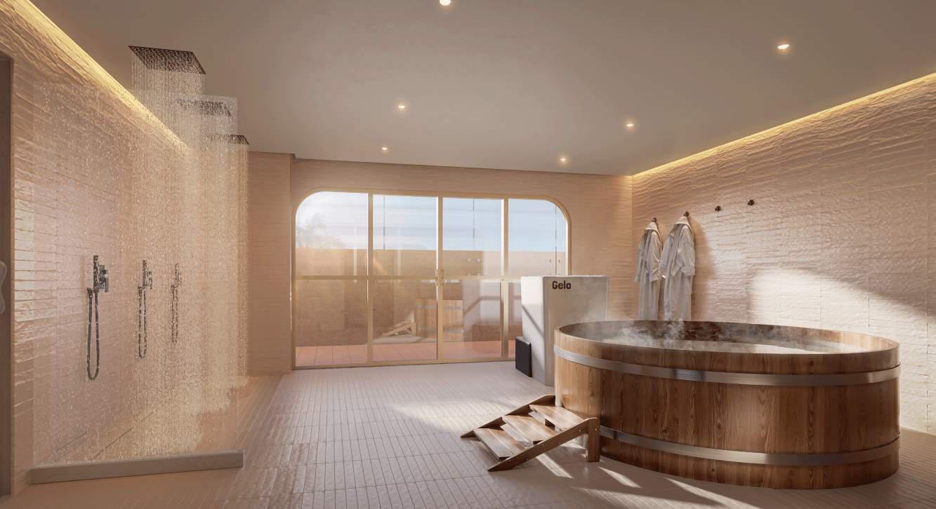O projeto inclui cinco elevadores, pé-direito de 4,35m no térreo e 42 vagas para as unidades maiores.
