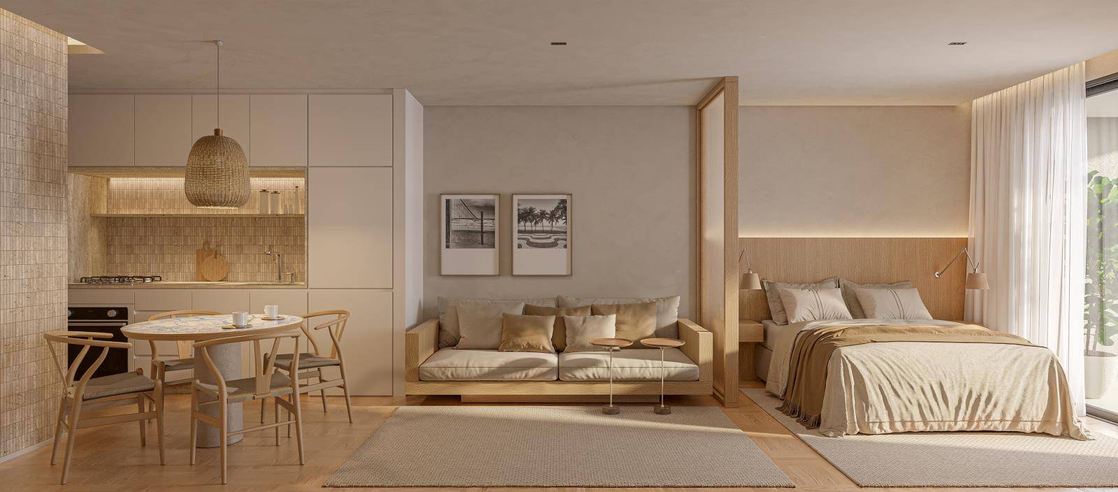 - Studios (36 a 40m²): práticos e funcionais, perfeitos para quem deseja viver ou investir em temporada.